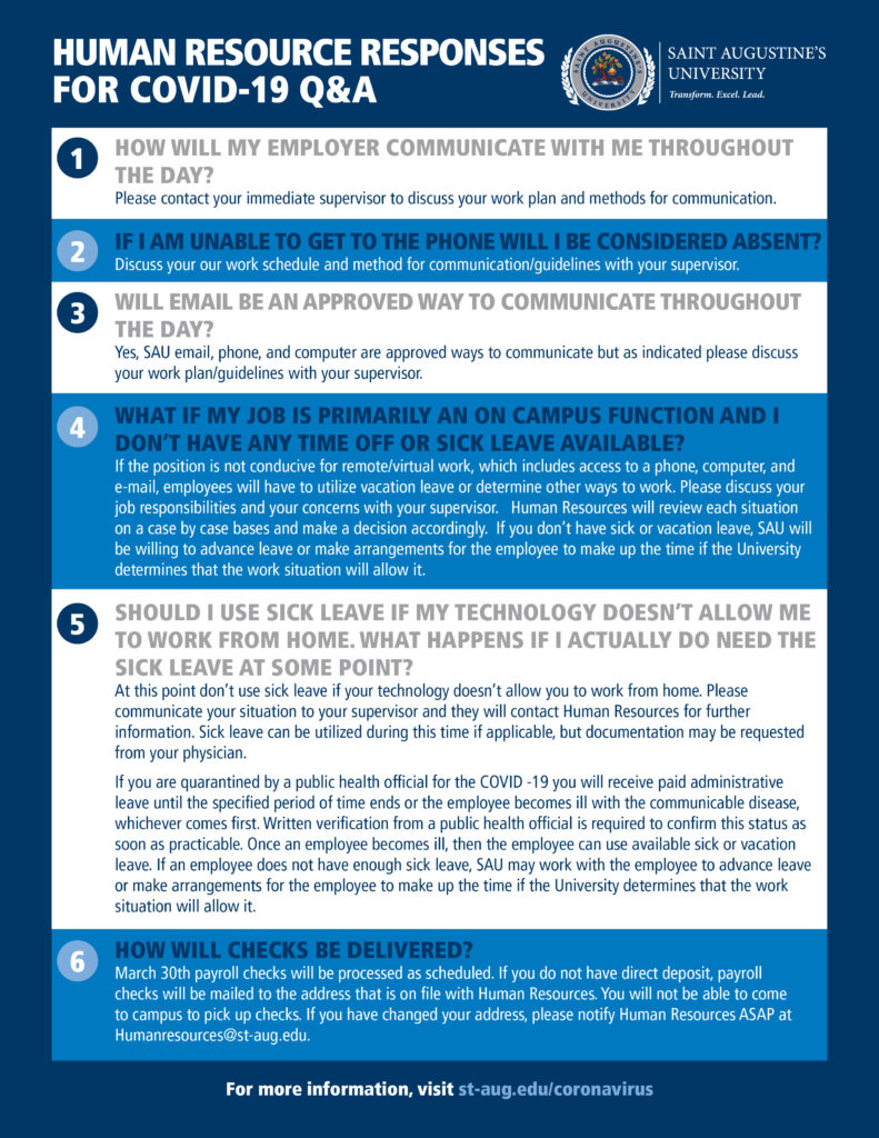 Participation in direct deposit is required of all Saint Augustine’s University employees. Direct deposit will be issued for all payrolls, including the final payroll of employment.